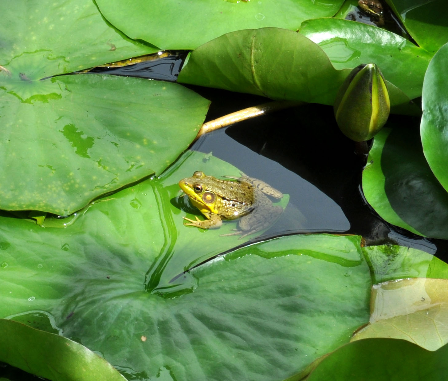 Our mink frog, in the pond, is a new “croaker.” Not bad for a newcomer. A few weeks ago it was but a tadpole, no legs or arms. Now it is enjoying fresh adulthood.
