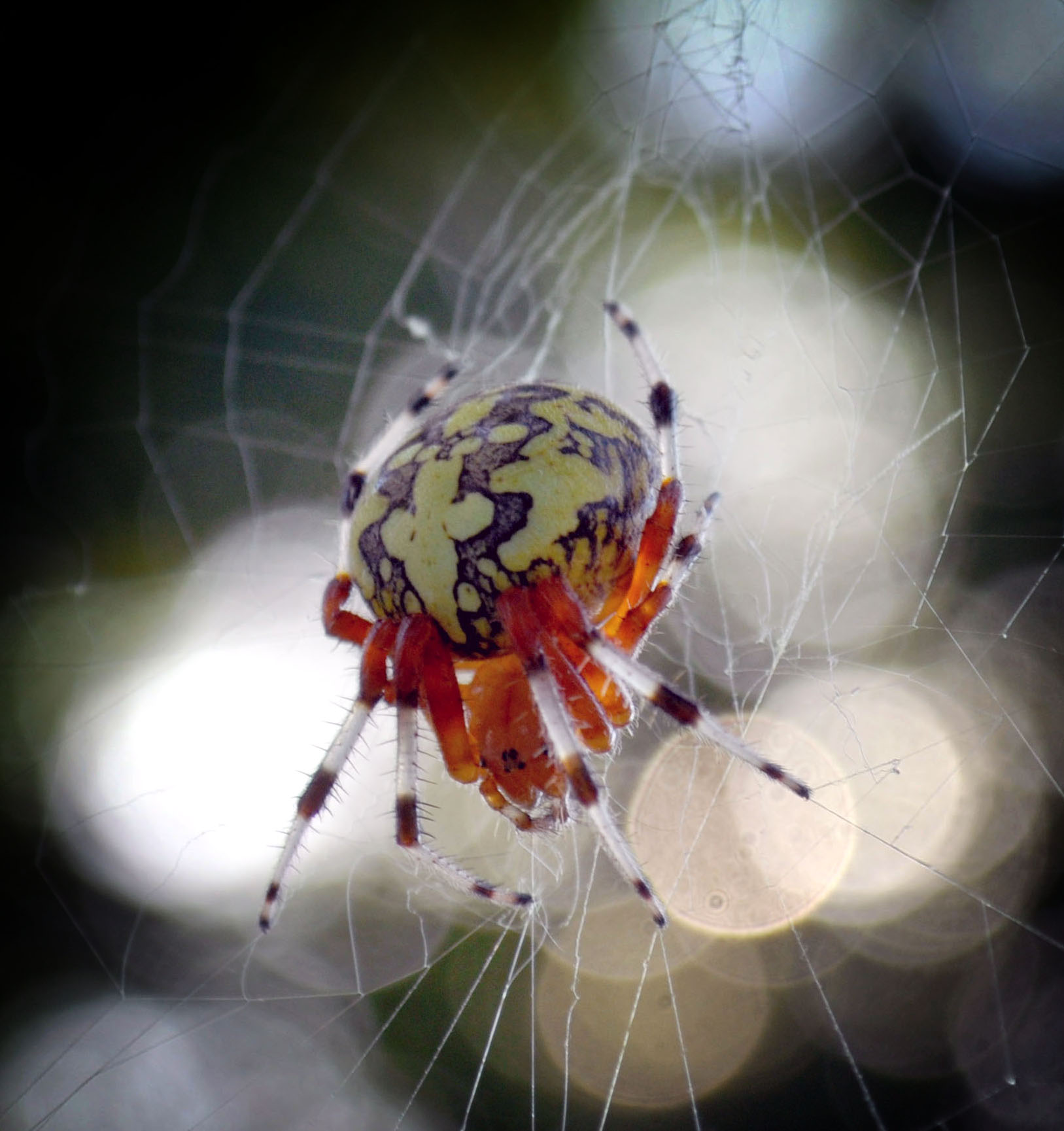 A weird spider outside the window. Heather Palmer identified this one – marbled orb weaver. Now we know! September seems to be a good month to observe spiders. Keep your eyes open!