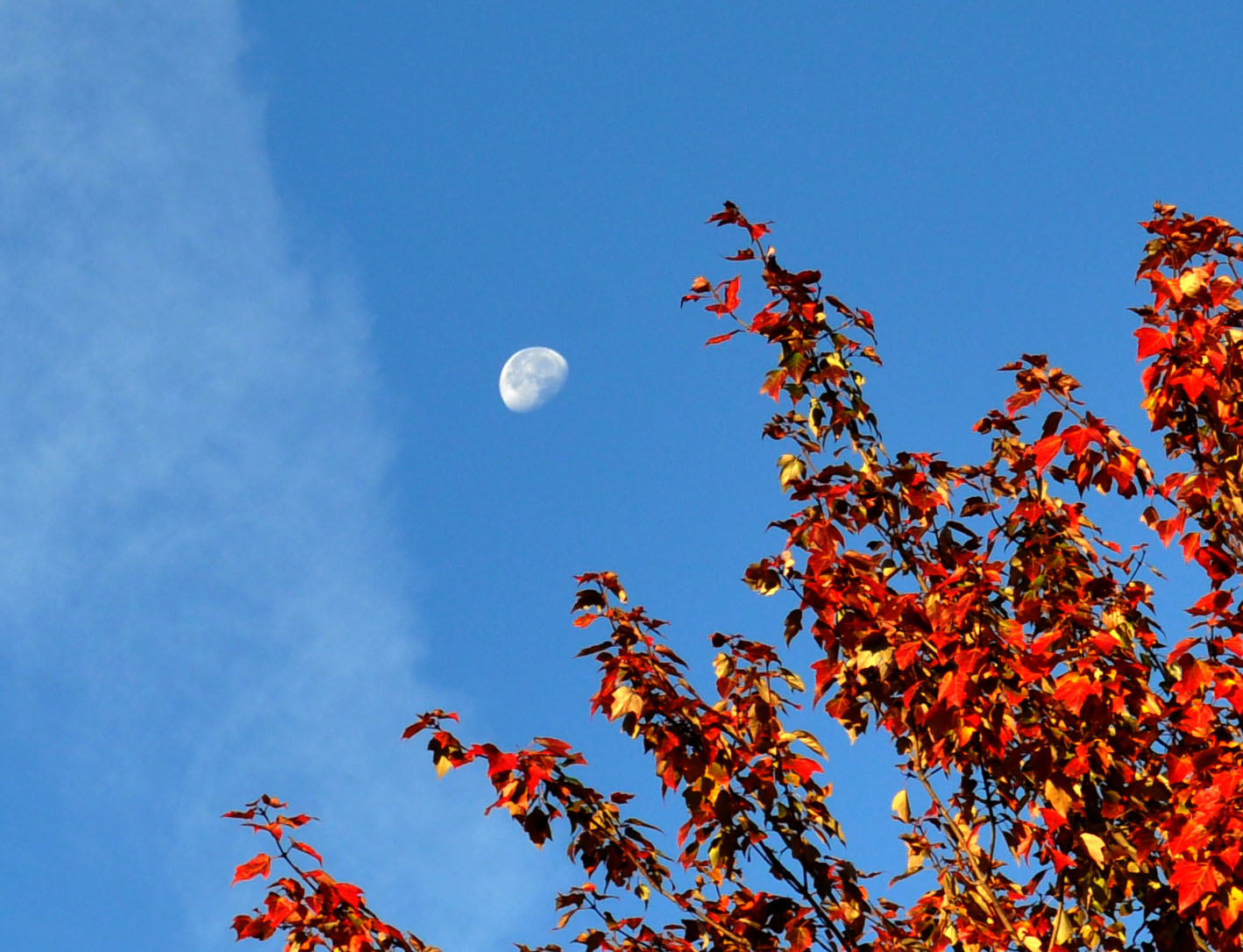 When fall arrives, I always have a sense of fulfillment, of harvest home, of a time to reflect and rest. The moon above our changing sugar maple tree reminds us of God’s presence, his love and his strength.